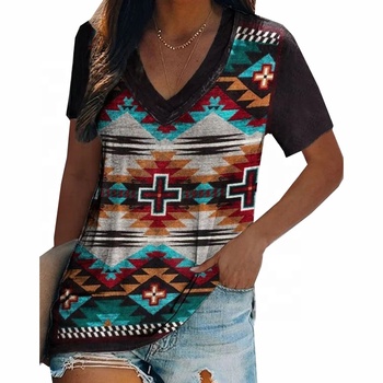 Женская Винтажная футболка с V-образным вырезом и геометрическим принтом