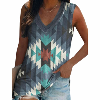 Женский винтажный жилет Rodeo с геометрическим принтом, V-образным вырезом, без рукавов